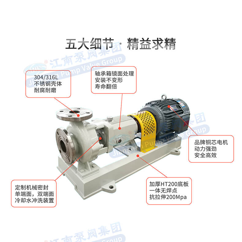 - JIH不銹鋼離心泵高效節(jié)能、抗汽蝕性能強(qiáng),適用溫度范圍廣。具有運(yùn)行穩(wěn)定、噪音振動(dòng)低、可靠性高、壽命長(zhǎng)等優(yōu)點(diǎn),是堿液、醇類、各種有機(jī)溶劑等介質(zhì)的理想輸送設(shè)備。