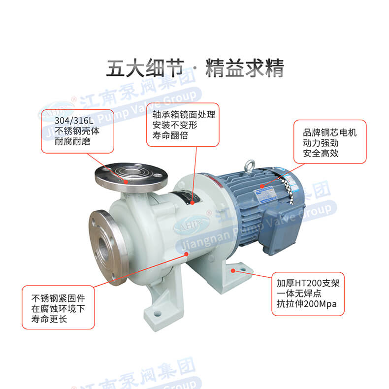- JMP不銹鋼磁力泵高效節(jié)能、抗汽蝕性能強,適用溫度范圍廣。具有運行穩(wěn)定、噪音振動低、可靠性高、壽命長等優(yōu)點,是堿液、醇類、各種有機溶劑等介質(zhì)的理想輸送設(shè)備。